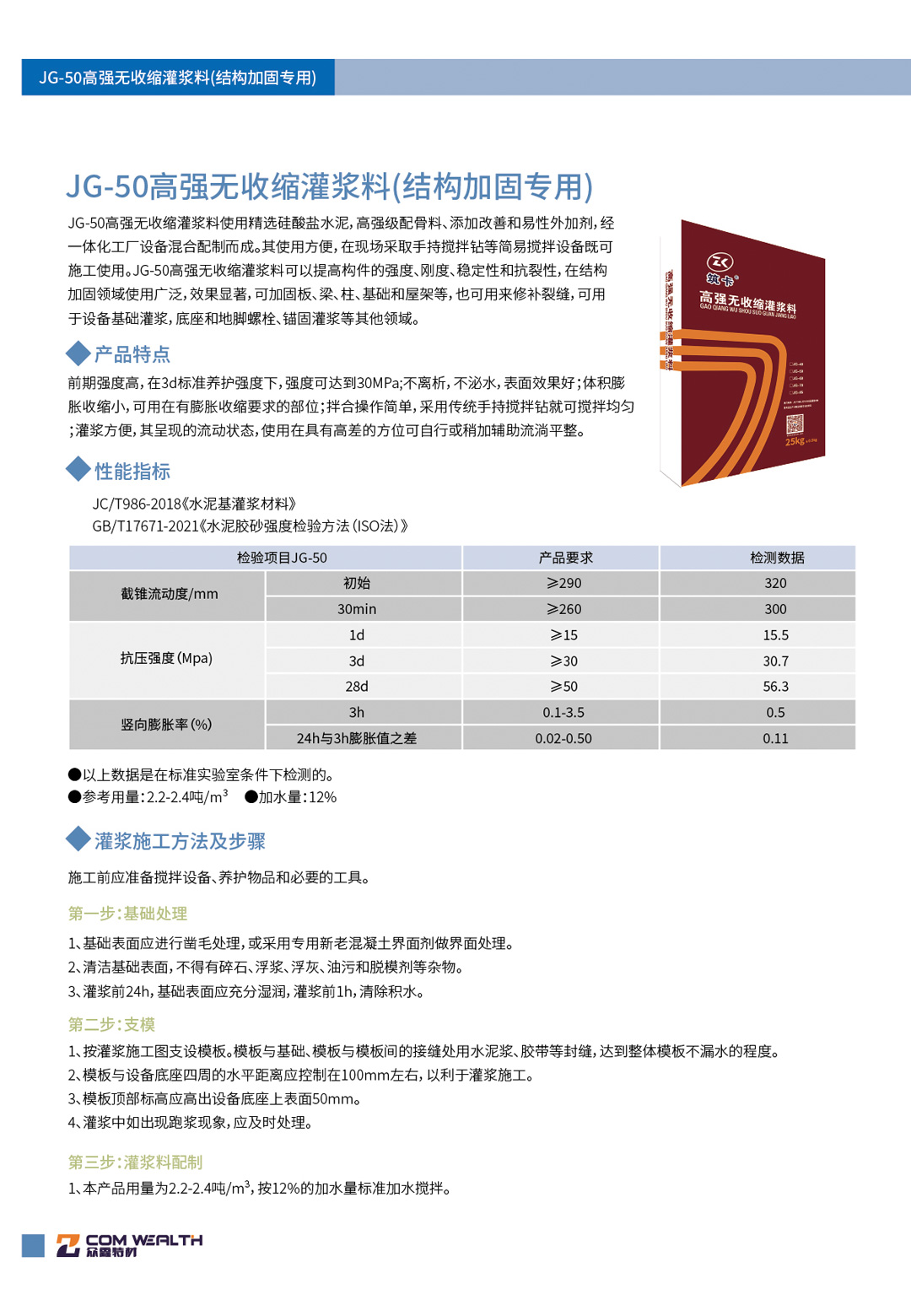 JG-50高強無收縮灌漿料